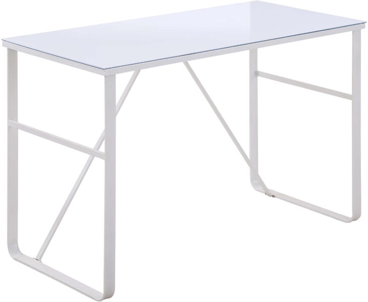 HOMCOM Íróasztal: Modern, fehér fém és üveg íróasztal 120x60cm Ez a stílusos és praktikus HOMCOM íróasztal tökéletes választás otthoni irodába, hálószobába vagy nappaliba. Minimalista dizájnja és fehér színe könnyen illeszkedik bármely berendezéshez. Főbb jellemzők:Robusztus szerkezet: Fém váz és edzett üveg asztallap biztosítja a stabilitást és a tartósságot. A 80 kg-os teherbírás elegendő helyet biztosít a számítógép, monitor és egyéb eszközök számára. Elegáns dizájn: A fehér fém váz és az üveglap modern és letisztult megjelenést kölcsönöz az íróasztalnak. Praktikus méret: 120 cm széles és 60 cm mély asztallap elegendő helyet kínál a munkához vagy a tanuláshoz. A magassága 74,5 cm. Könnyű tisztítás: Az üveglap könnyen tisztítható, így mindig makulátlan marad. Könnyű összeszerelés: Az összeszereléshez szükséges alkatrészeket és útmutatót a csomagolás tartalmazza. Méretek:Méret Méret (cm)Szélesség 120Mélység 60Magasság 74,5Asztallap 120 x 60Maximális teherbírás 80 kgSzerezze be most ezt a sokoldalú és elegáns íróasztalt, és teremtsen kellemes és hatékony munkakörnyezetet otthonában!