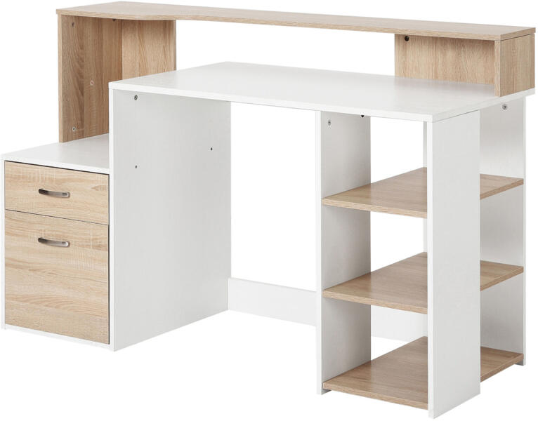 HOMCOM Modern Számítógépasztal: Stílus és funkcionalitás egyben! ? Teremts egy kényelmes és stílusos munkaterületet ezzel a modern HOMCOM számítógépasztallal. Kiváló minőségű anyagokból készült, praktikus kialakítása révén ideális választás otthoni irodádba vagy dolgozószobádba. Főbb jellemzők:Tágas munkalap: 140 x 55 cm-es felület a kényelmes munkavégzéshez. Praktikus tárolás: 2 fiók a személyes tárgyaknak Nyomtatópolc a helytakarékos elhelyezéshez 3 polcos szekrény a könyveknek, dokumentumoknak vagy dekorációknakStílusos design: Natúr fa és fehér színkombináció, amely bármelyik enteriőrbe illik. Strapabíró anyagok: MDF fa és fém váz a hosszú élettartamért. Könnyű összeszerelés és karbantartás: Gyorsan és egyszerűen összeszerelhető, a felülete pedig könnyen tisztítható. Műszaki adatok:Jellemző ÉrtékSzín Natúr fa és fehérAnyag MDF fa és fémTeljes méret 140 x 55 x 92 cmNyomtatópolc mérete 39,6 x 54,5 cmKis fiók mérete 38 x 14 cmNagy fiók mérete 38 x 34 cmPolc mérete 51,5 x 22,5 cmMDF vastagsága 16 mmMax. terhelhetőség 50 kgEz az asztal nem csak praktikus, de a letisztult designjával feldobja a szobád hangulatát. ?