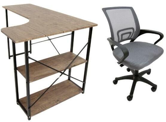 IdePar Quest Sarokíróasztal Sötét Tölgy + Argo Forgószék Szürke